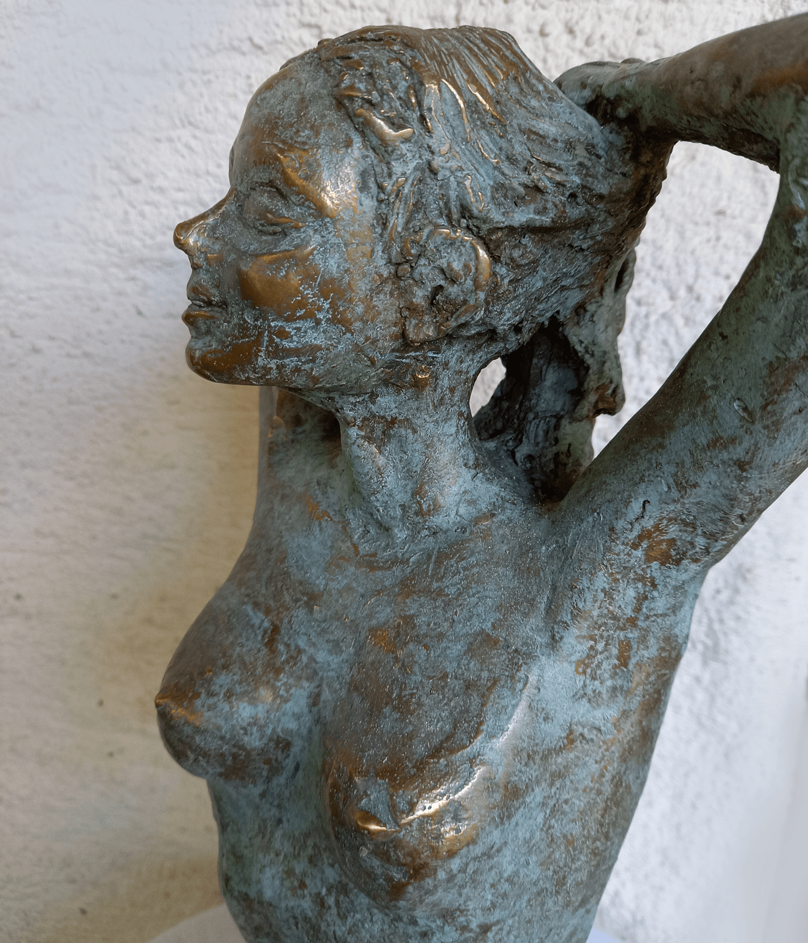 The artist continues to model her sculpture with loving care until the traces of the casting process and small defects in the wax form are no longer visible. The plastic is then patinated with various chemical substances that vary depending on the desired color shading. Only now is the sculpture finished in a process that has been practiced for thousands of years to invite the viewer to linger.